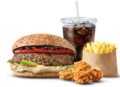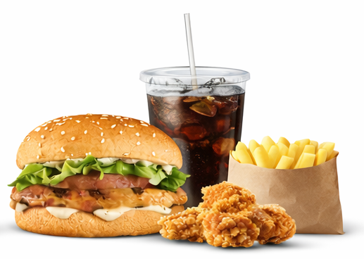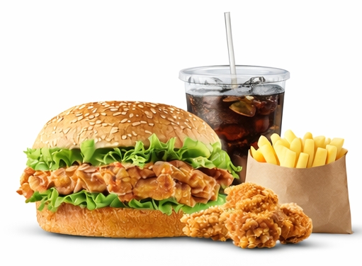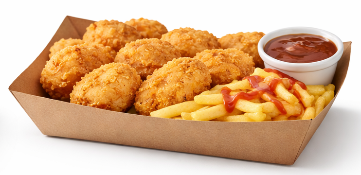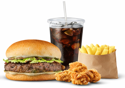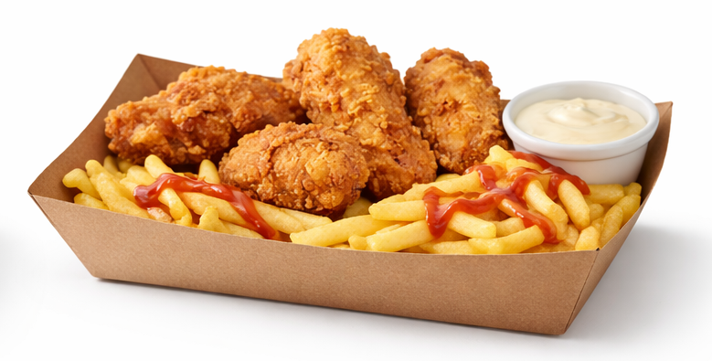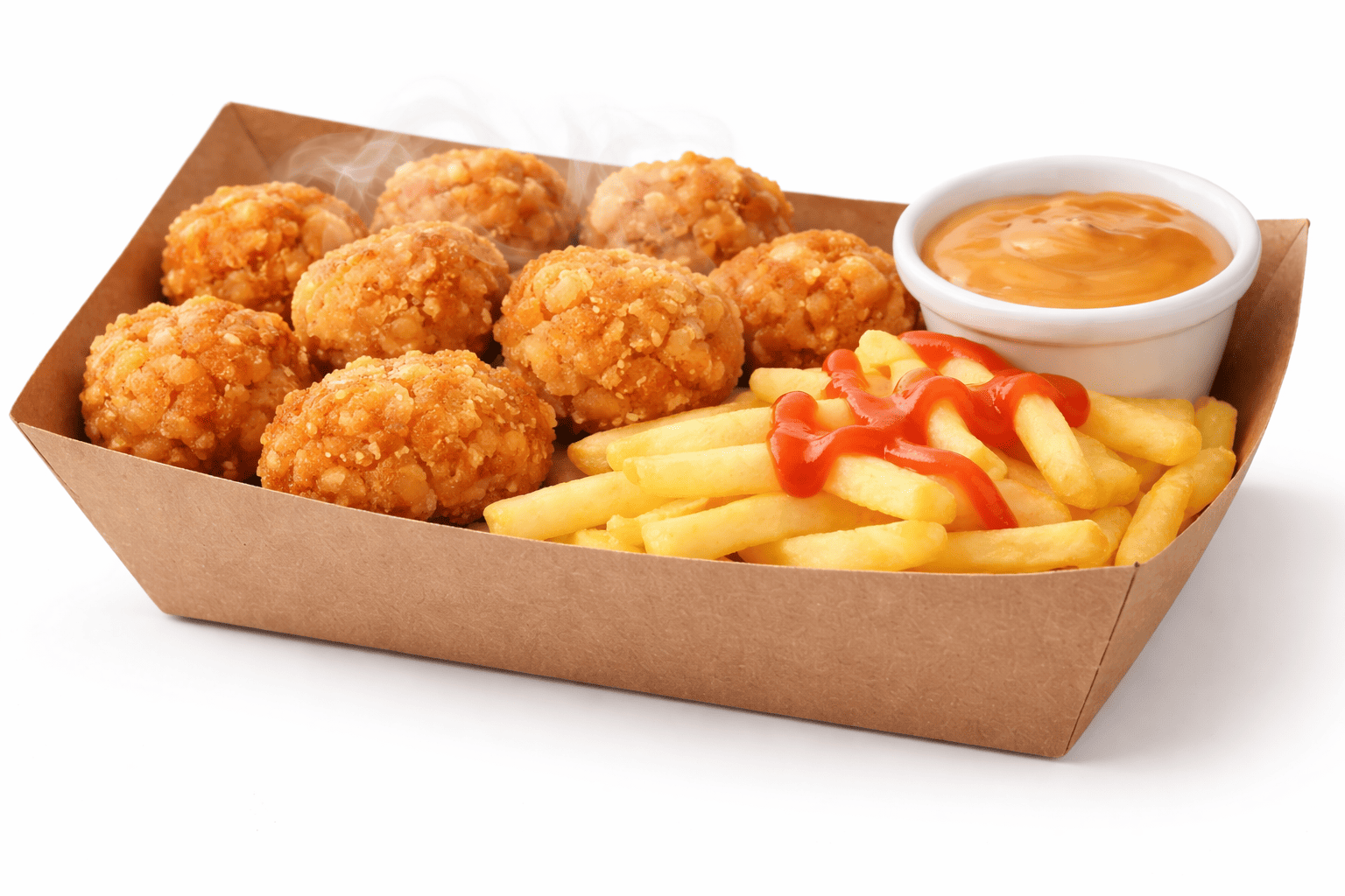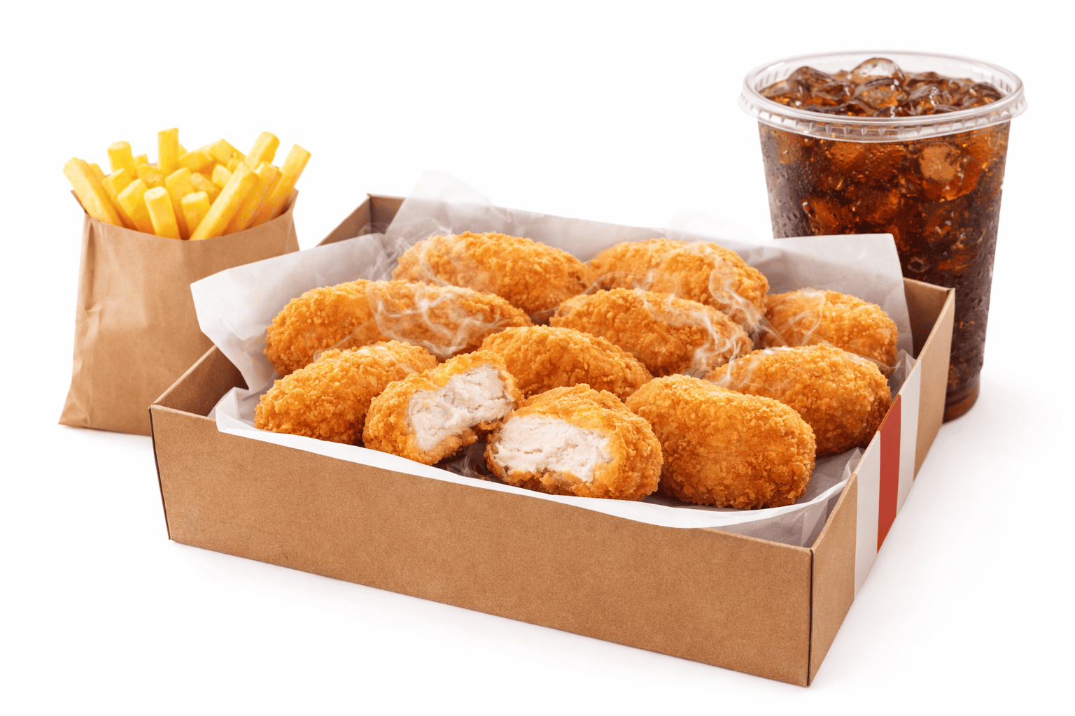 4 Tenders, 6 Wings, 2 Bites, 4 Nuggets + 2 Friet, 2 Drank, 2 Saus